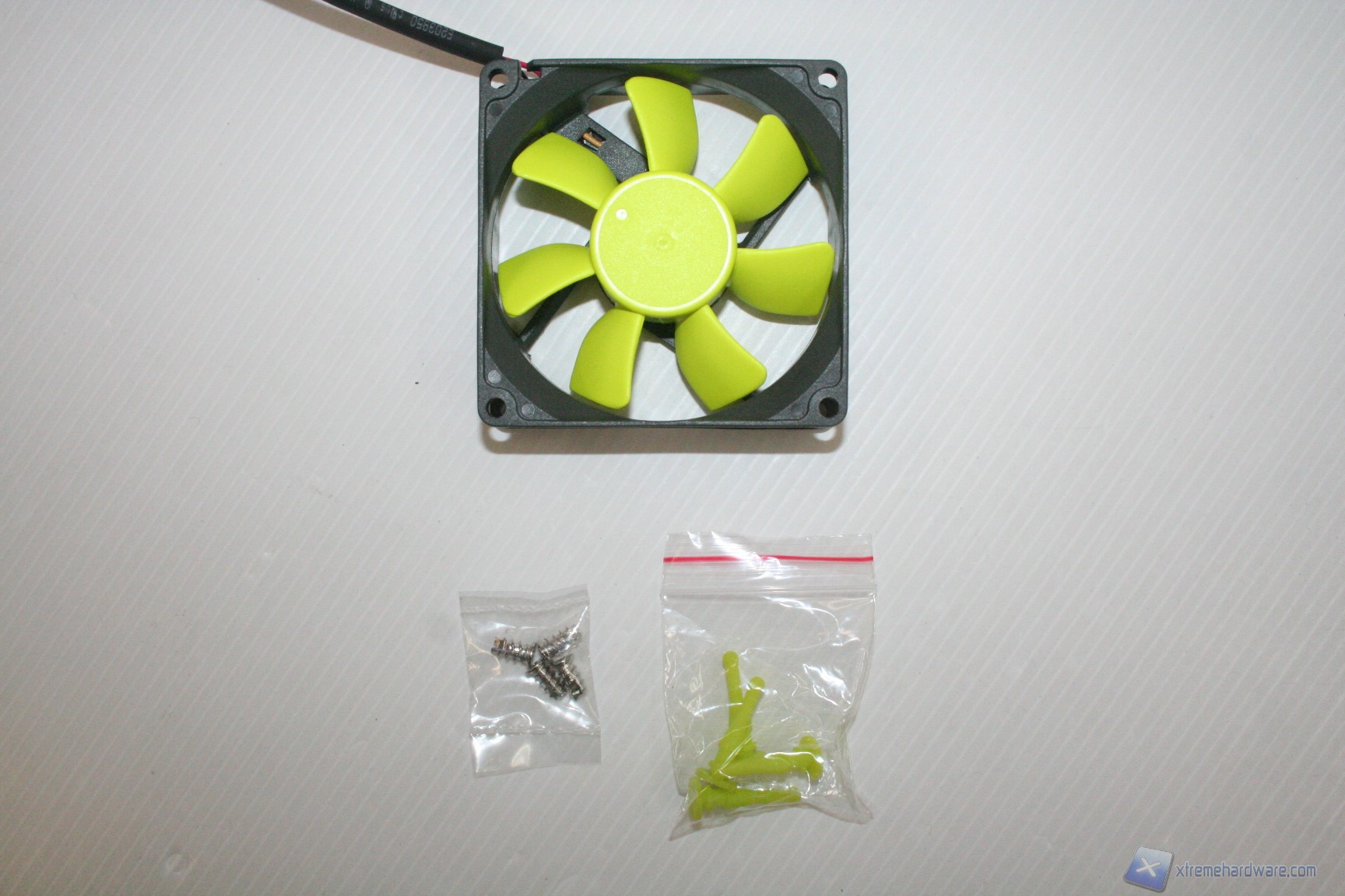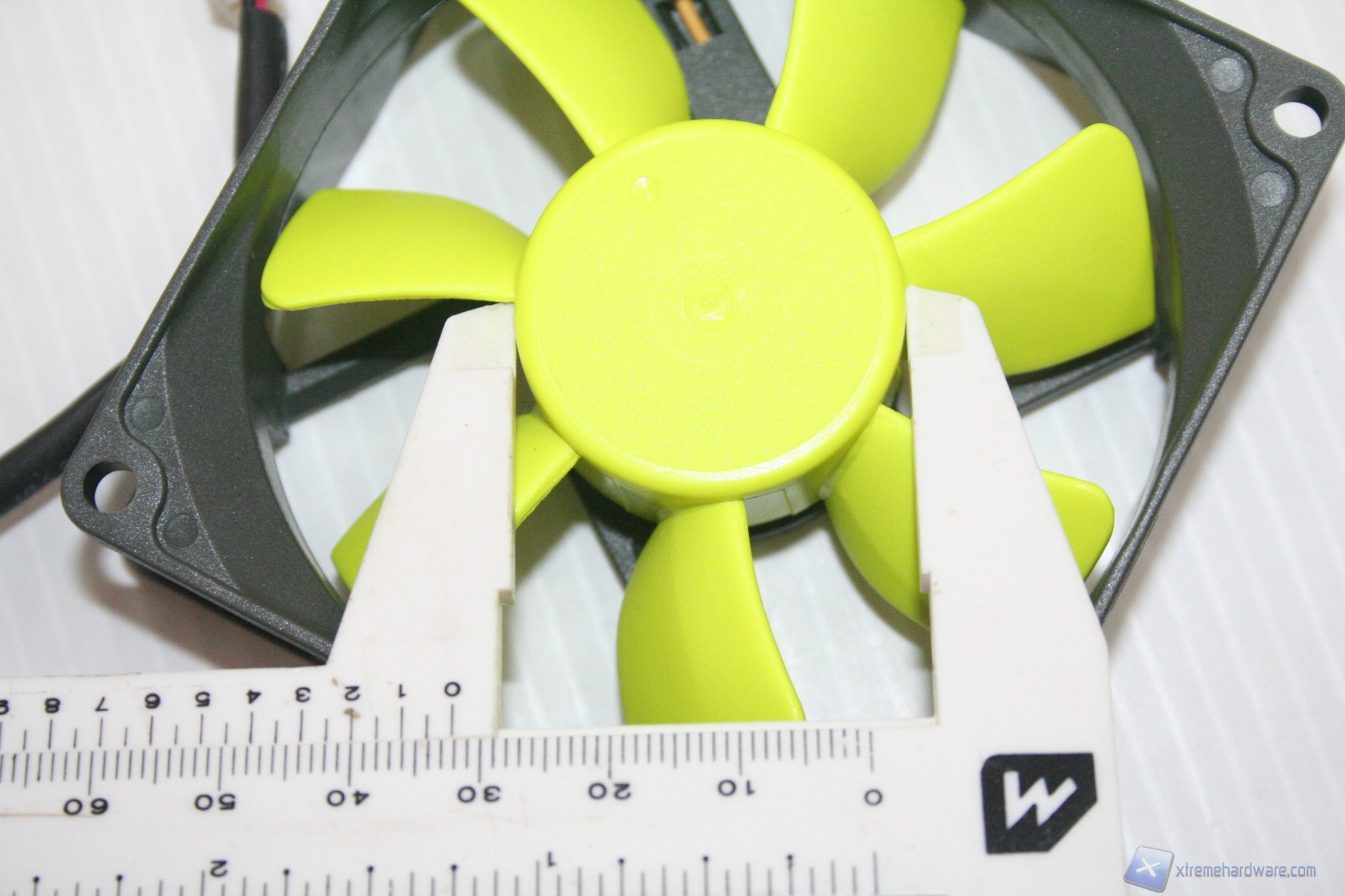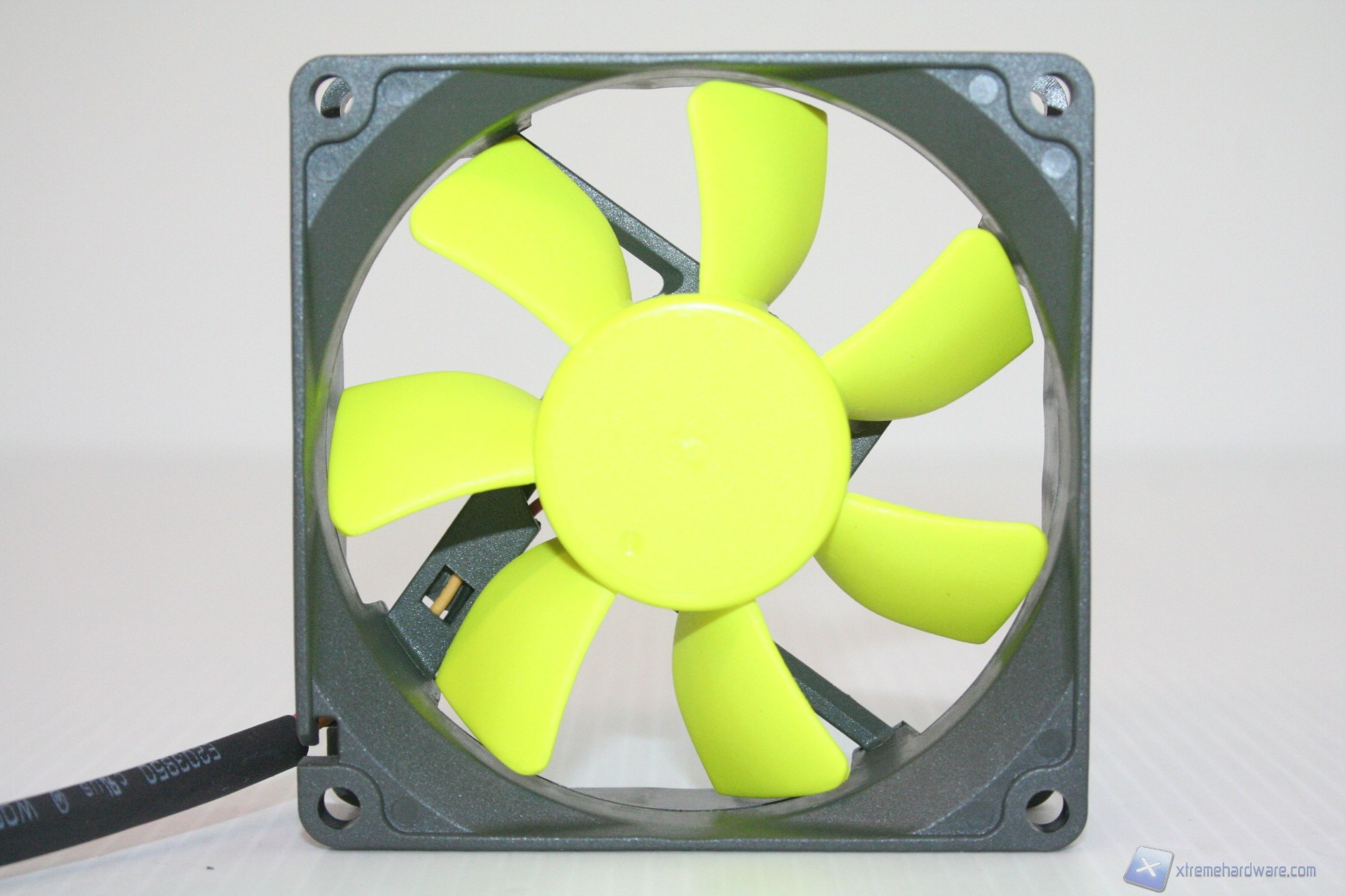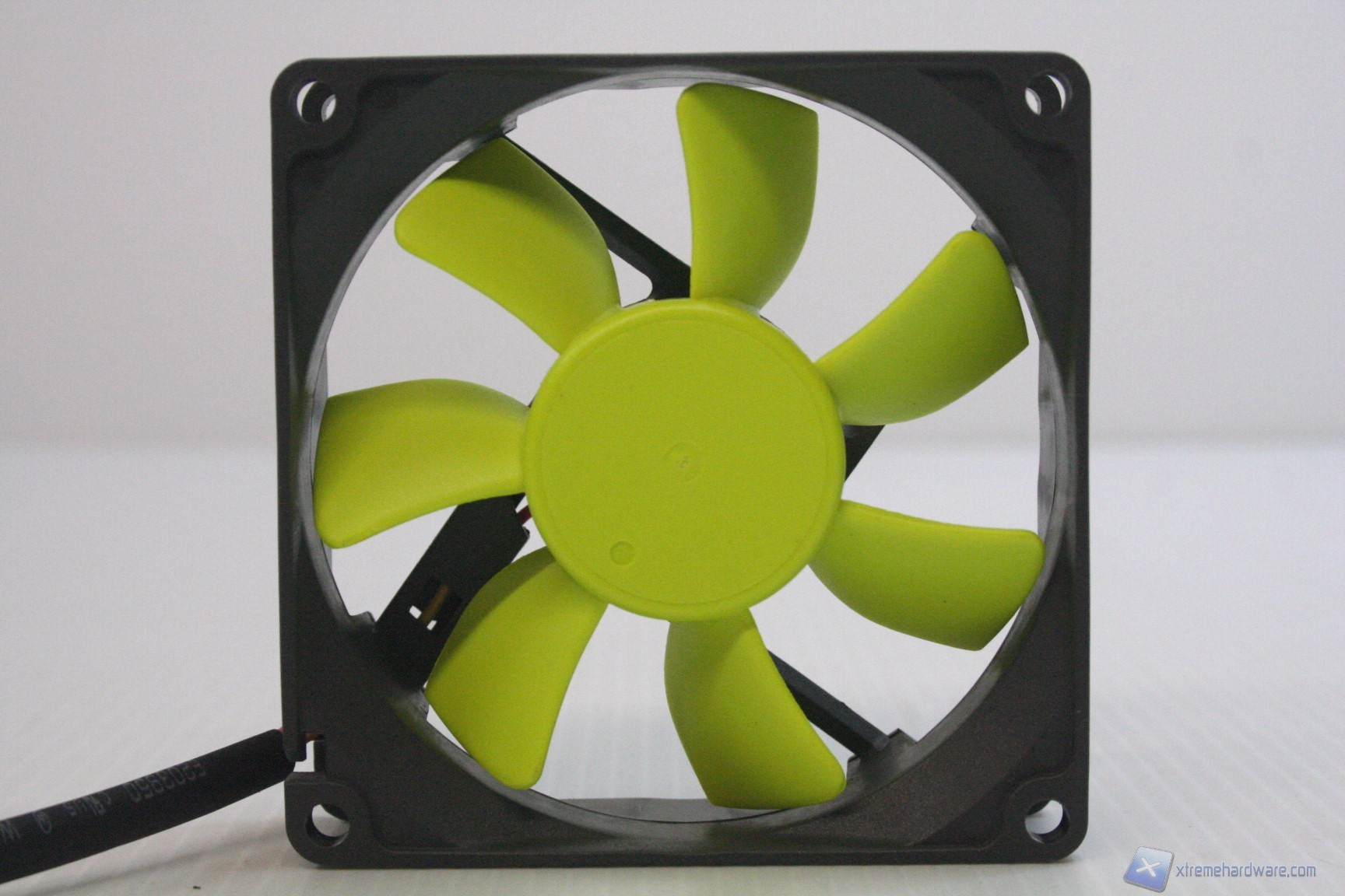 La struttura è standard, eccetto la colorazione verde limone scuro delle pale, che sono specifiche per la ventilazione di case e quindi non molto appropriate per dissipatori (anche se per questa tipologia è irrilevante). Il motore è di grandi dimensioni e la funzionalità PWM è specifica solo per il modello 80P. Non è noto l’MTBF, se non che è riportata la presenza dell’Hydro-dynamic bearing. Nella confezione del modello 80P è inserito un connettore che permette la regolazione appaiata delle ventole, un “PWM split cable”, simile quindi alle soluzioni Arctic Cooling. Il numero delle pale, come il CFM e la pressione statica sono standard. Il telaio non presenta particolarità degne di nota e le pale non sono removibli. Il target di utenza è specifico per tutti coloro che necessitano di ventole generiche per la sostituzione, o il potenziamento, di quelle in un cabinet o dissipatore low profile. La rumorosità non sarà una caratteristica di questi modelli, anche se ovviamente a 2000RPM il modello 80P comincia a farsi sentire.