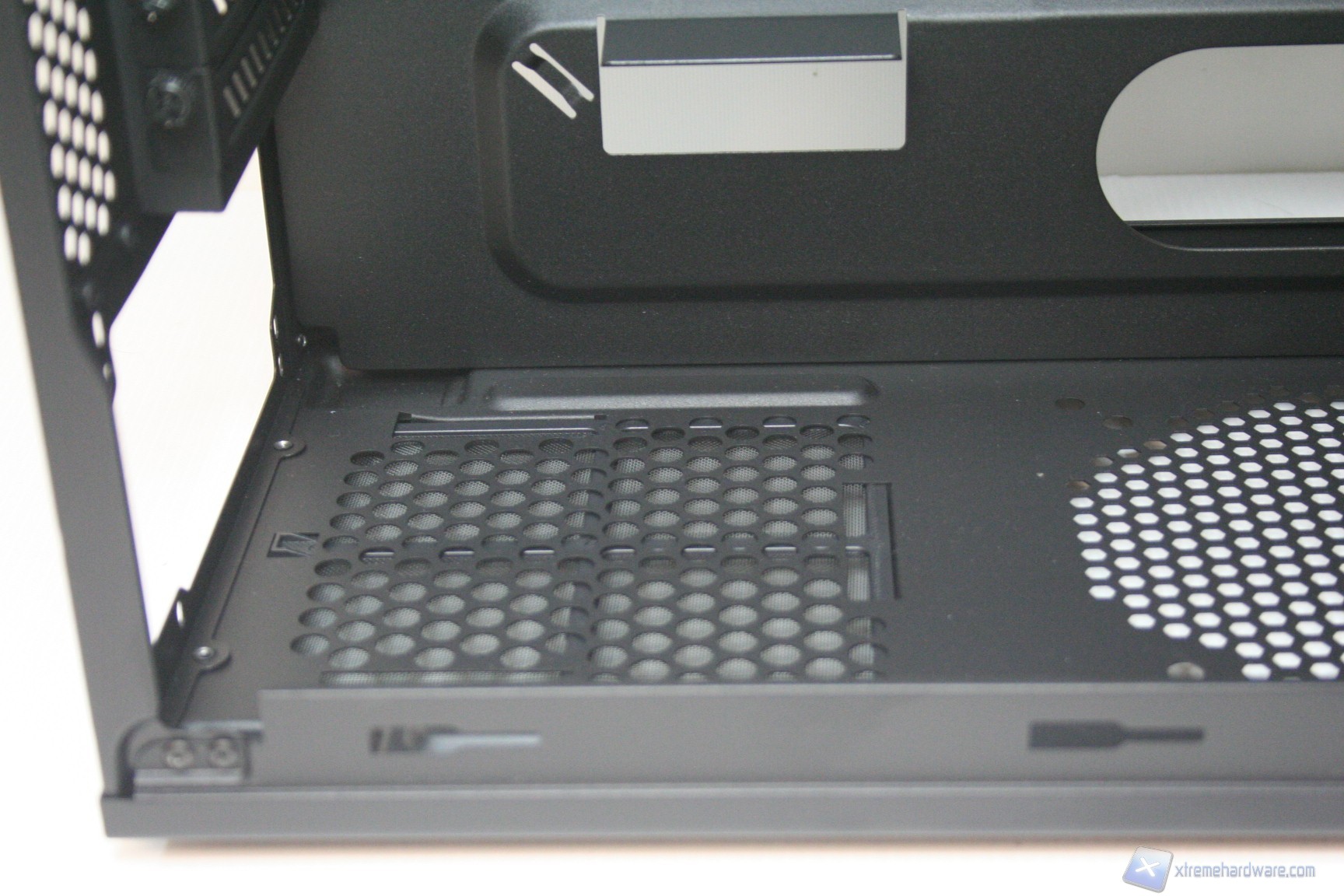 Il posizionamento dell’alimentatore è classico, quindi nella parte inferiore e posteriore dello chassis. Non sono presenti distanziatori gommati antivibrazione e quindi è riposto semplicemente su due distanziatori di acciaio, che ne permettono l’incastro. Data la tipologia e la rigidità difficilmente ci saranno vibrazioni, però sarebbe stato forse appropriato permettere un isolamento di questo tipo, ormai una prassi consolidata a livello di progettazione. La lunghezza massima consentita è fondamentalmente irrilevante, dato che potete installare anche i modelli più lunghi in commercio. L’alimentatore si inserisce facilmente ed il fissaggio avviene tramite consuete viti filettate posteriori. Il cablaggio è valido in quanto è presente una paratia laterale per il passaggio dei connettori.